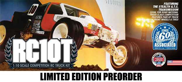 Team Associated is thrilled to celebrate their 60th anniversary alongside the release of the RC10T Classic. It's more than just a model; it's a journey back in time to a period when RC racing was at its peak. Get ready to unleash the power of the Stealth transmission and write your own chapter in RC racing history with the RC10T Classic by Team Associated. A very limited number of kits will be available, don't miss out, preorder now.