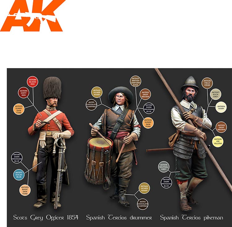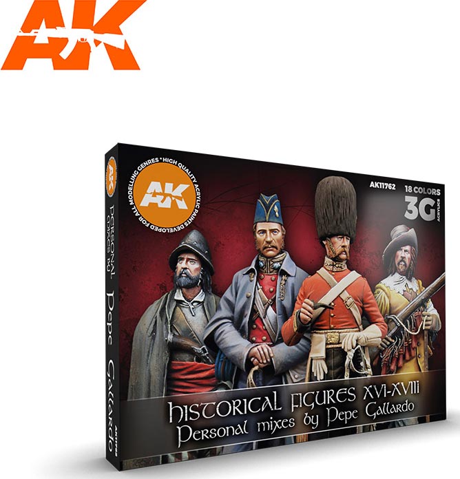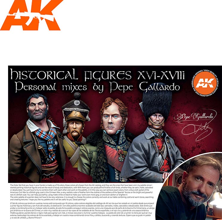 This signature set includes a selection of 18 colors considered by him essential to be able to paint a wide variety of historic figures by making mixes with the best acrylic paint on the market.