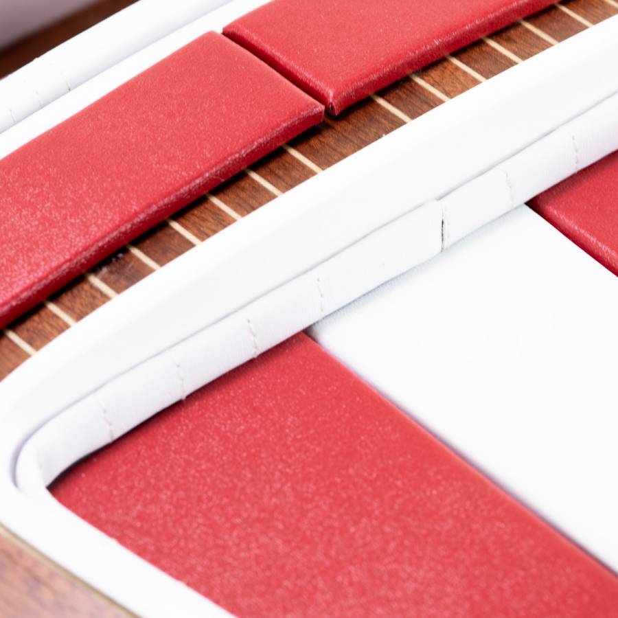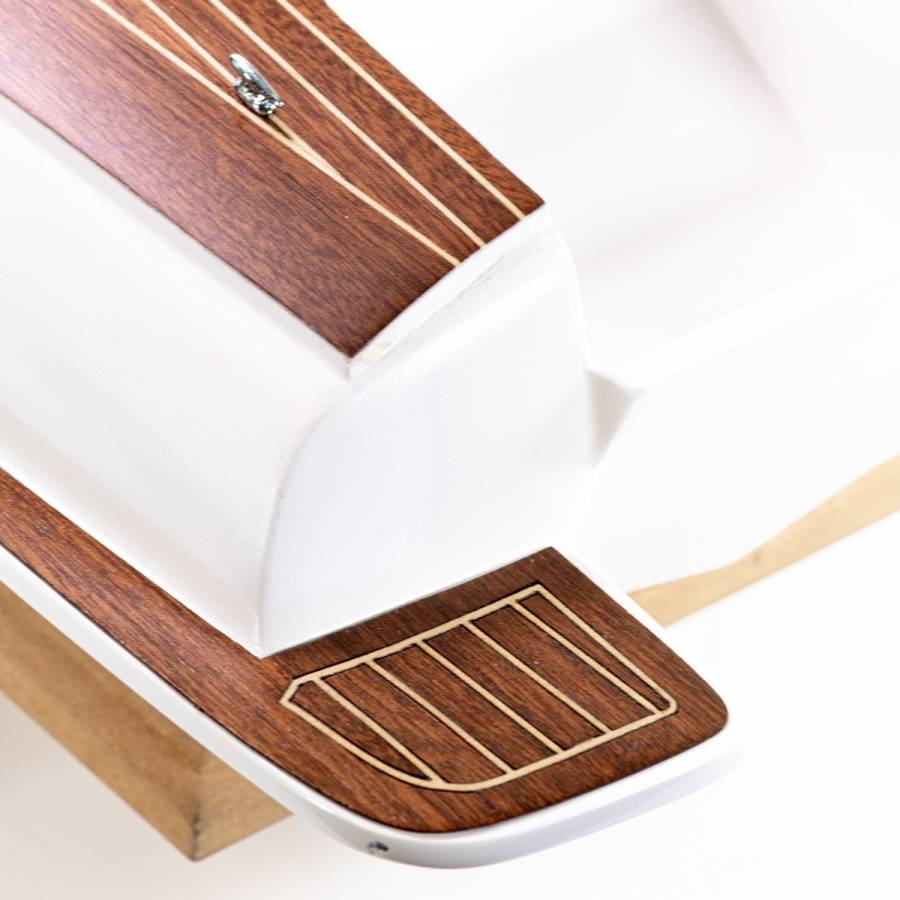 - fiberglass hull with wood preassembled bridge