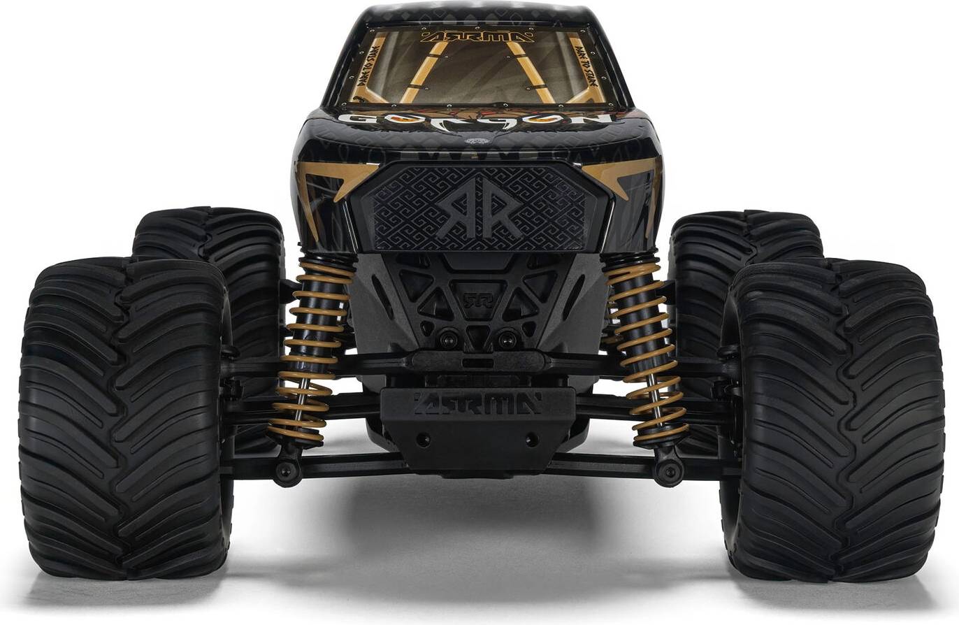 Like the legendary creature that turned heroes to stone, the ARRMA GORGON GROM 4X4 RTR Monster Truck strikes fear—or envy—in every driveway and dirt track it haunts. Forged for both newcomers and seasoned bashers, the GORGON GROM packs the raw power and untamed spirit of a true monster, all contained within a compact and powerful frame.