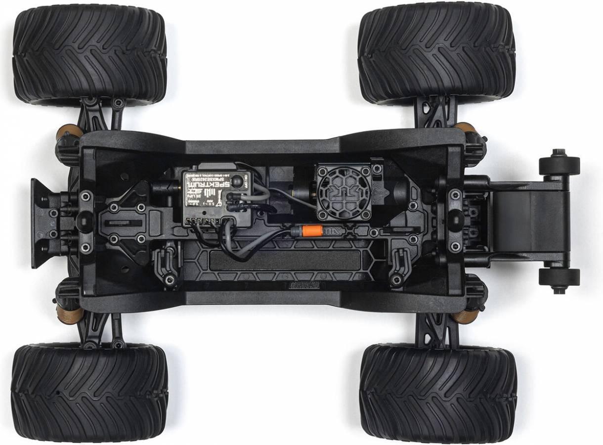 Underneath, the reinforced chassis and high-travel suspension is built to withstand every petrifying impact and keep going. This truck isn't just tough. It's smart. The deep tub chassis keeps out dirt and debris so you can bash harder without clogging the works. The monster truck stance and elevated center of gravity allow it to conquer all obstacles in its way. Chaos, indoors or out, is where the GORGON GROM rules.
