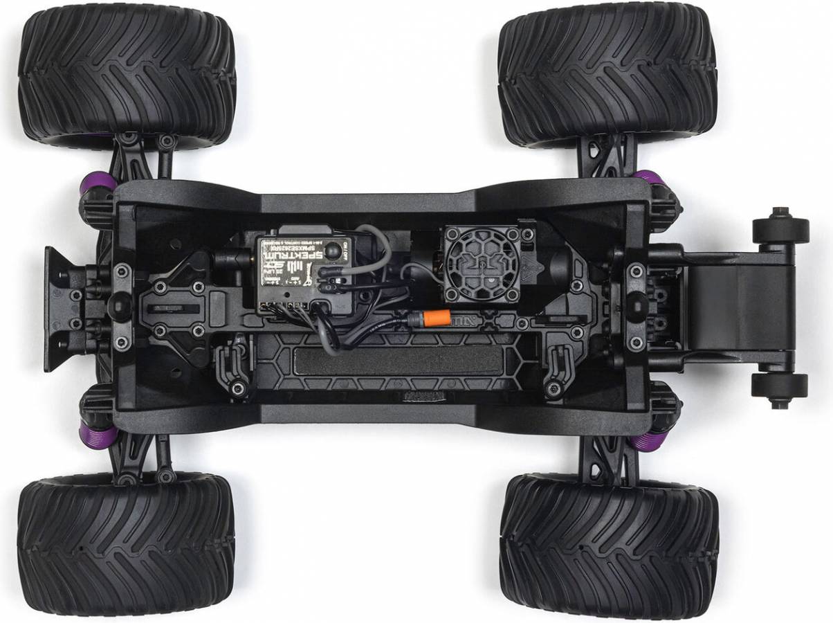 The QUAKE GROM's suspension is tuned to leap, land, and keep rolling. High-travel shocks soak up jumps and bumps. The deep tub chassis keep out rocks and debris, so you bash harder without worrying about what's in your path. A high center of gravity gives the QUAKE GROM that telltale monster truck stance, letting it clear gravel and dirt piles with ease. Got a driveway, a dirt patch, or an empty stretch of garage? The QUAKE GROM handles them all, and its size means you can have fun indoors too—when the weather turns or you just want to keep bashing.