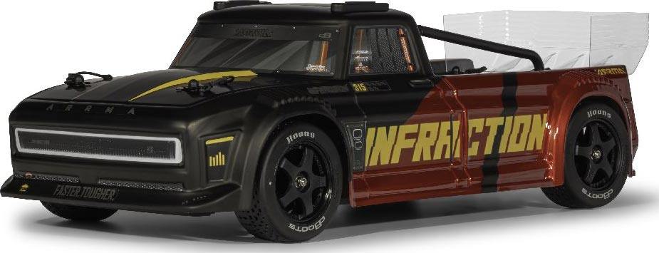 The ARRMA INFRACTION 223S BLX DSC 4X4 RTR delivers. Because the street is better at full speed.