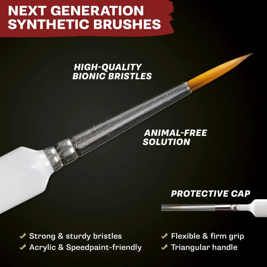 Insane Detail – Our historically bestselling brush, the Size 5/0 mm Insane Detail brush with Bionic Bristles is ideal for precision work such as weapons, monster scales, and rivets.
