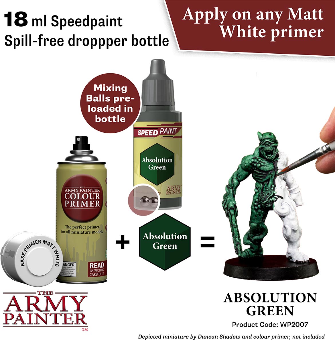 Simply apply one coat of Speedpaint directly over a white primed miniature and you are done! The Speedpaint will instantly create intense shading, vibrant colour, and a highlight effect in one application.