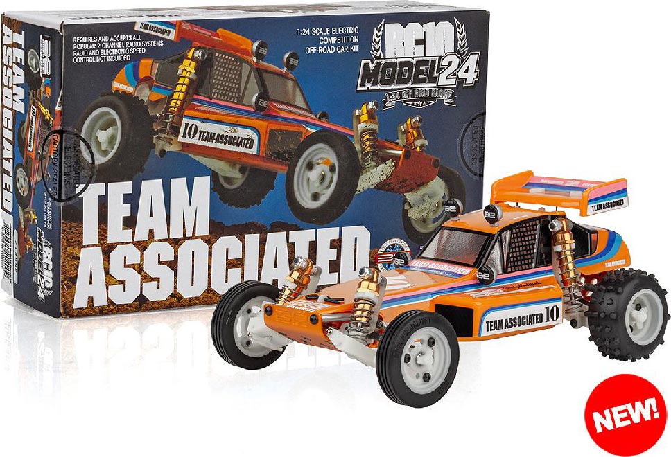 Experience off-road RC racing heritage in a compact form. The iconic RC10—reborn in 1:24 scale—is ready to race, display, and impress. Take the challenge and build yourself a winner. Team Associated RC10 Model 24.