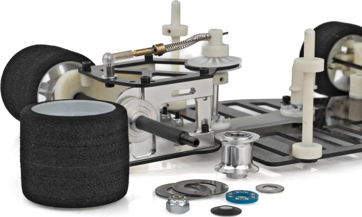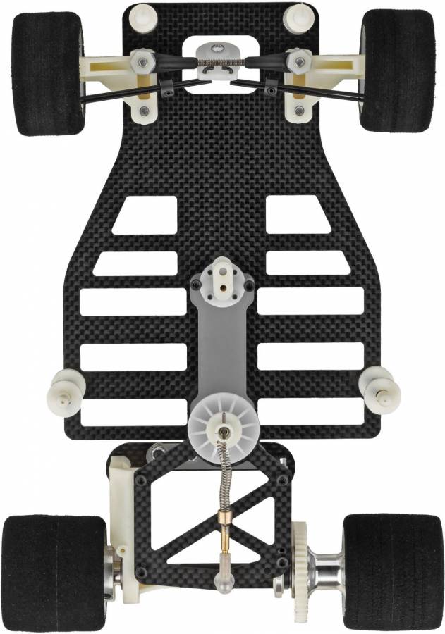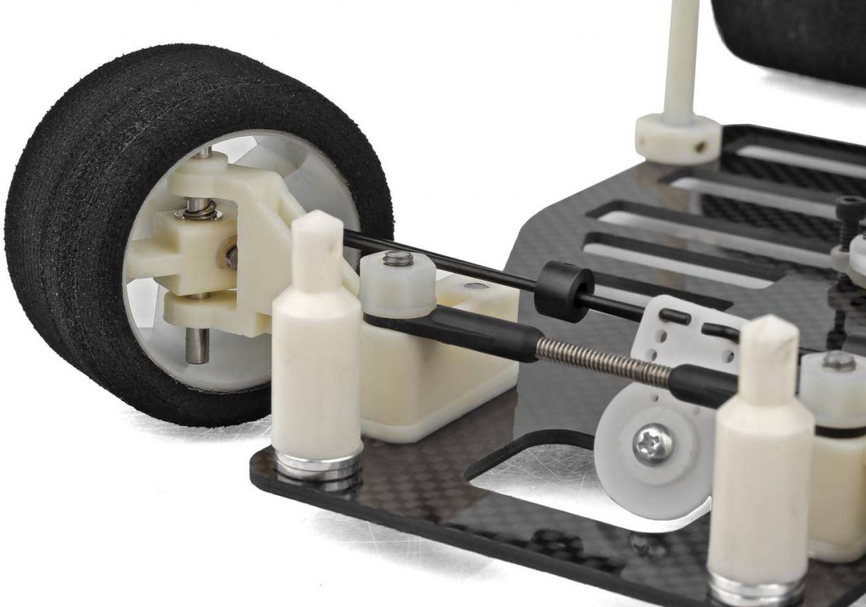 Superlight racing wheels contributed considerably to the RC12L’s reduced weight and improved response. A full range of tire compounds, coil springs and gear ratios are also available for fine tuning.