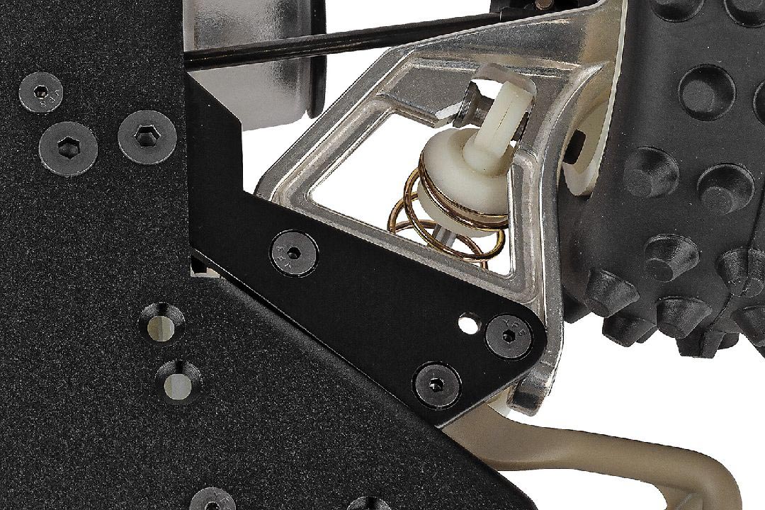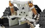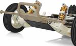 - Long travel, fluid-filled anodized aluminum coil-over shocks