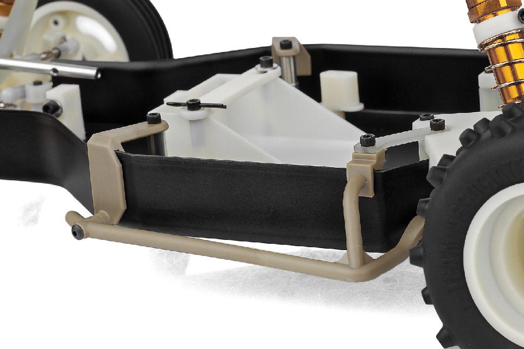 Retro-inspired styling is brought to life with a new molded front bumper and side guards, blending vintage looks with modern durability. At its core is the legendary Stealth® A.T.C. transmission with ball differential, delivering smooth, efficient power transfer and proven reliability. Featuring genuine Team Associated white molded and dyable plastics from front to back.