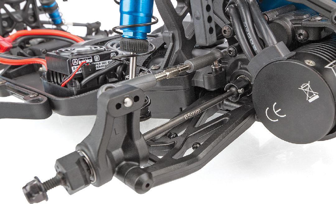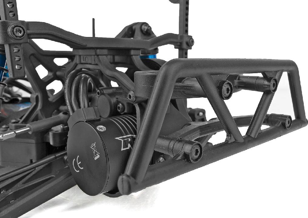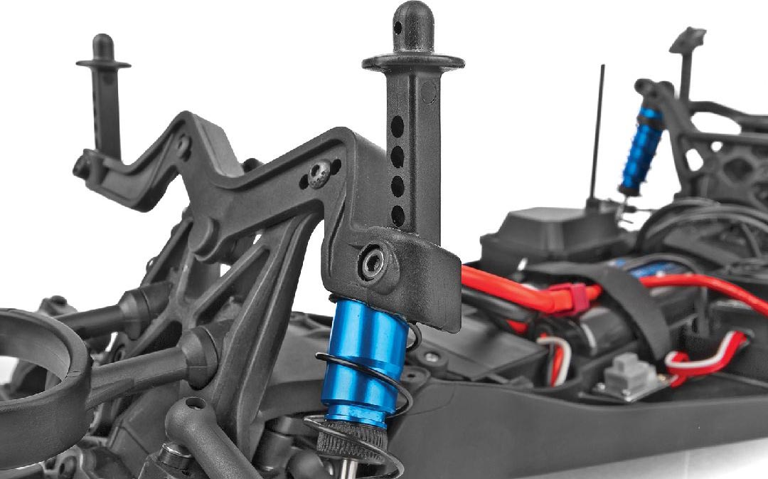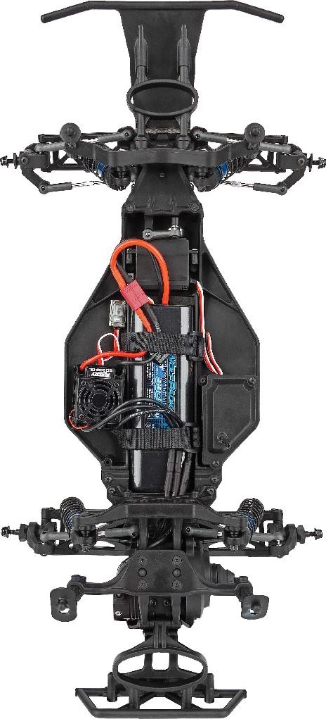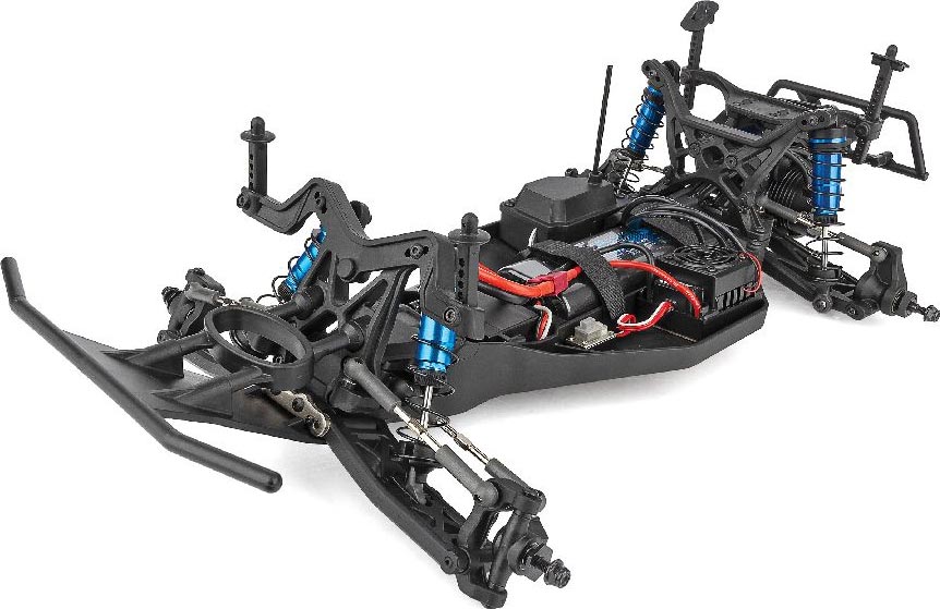 - Low center-of-gravity molded composite chassis with hook-and-loop battery straps that accommodate both NiMH and 2S and 3S LiPo battery packs