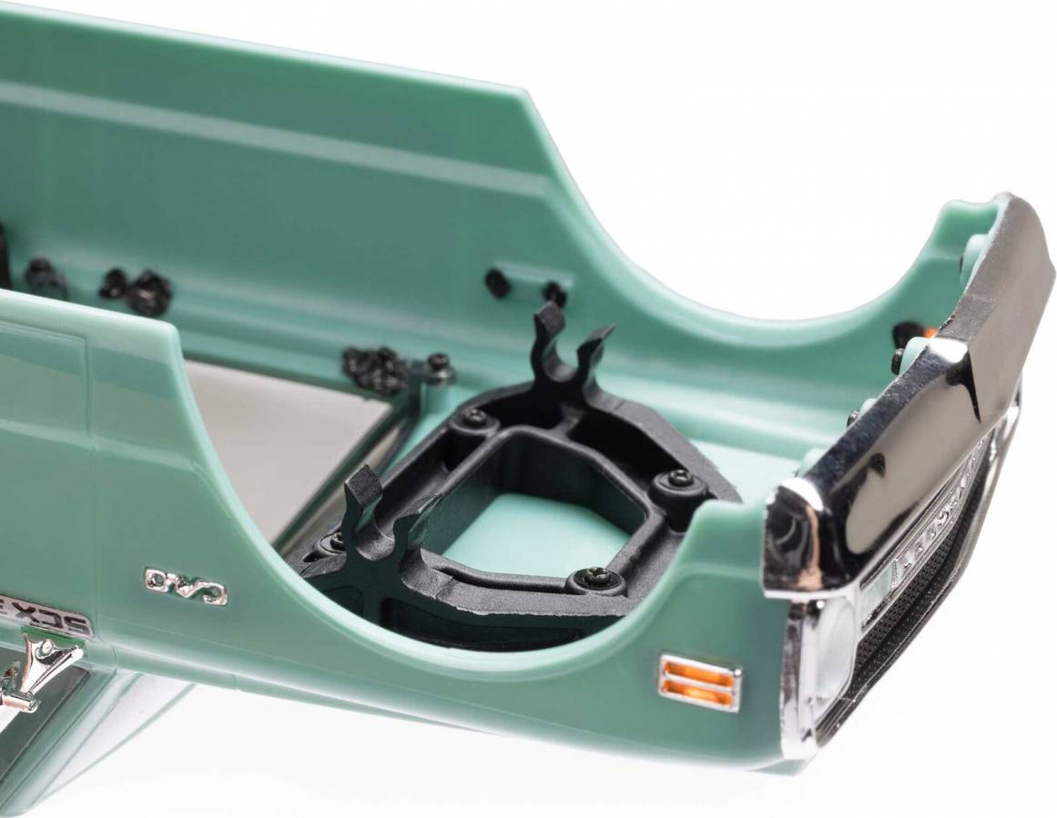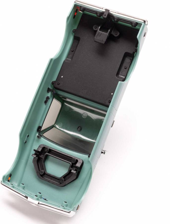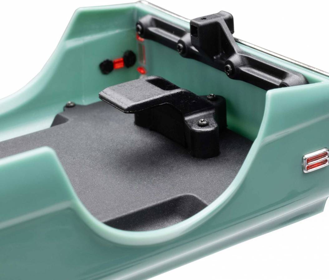 The Chevy K10 includes an angled skid plate to let you easily slide over challenging obstacles - a feature usually found only in competition crawlers. Ramped axle housings and high clearance links also help to avoid dragging and hangups. Climbing stability on the rocks gets a boost from the chassis’ forward weight bias. Other performance features include damped 25mm shocks, full ball bearings, a powerful Axial 65T motor, and dependable Spektrum electronics that are mounted low in the chassis for the optimal center of gravity.