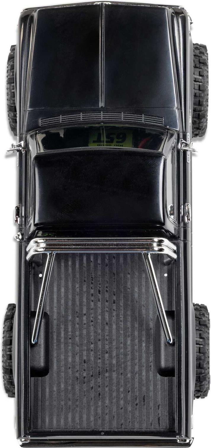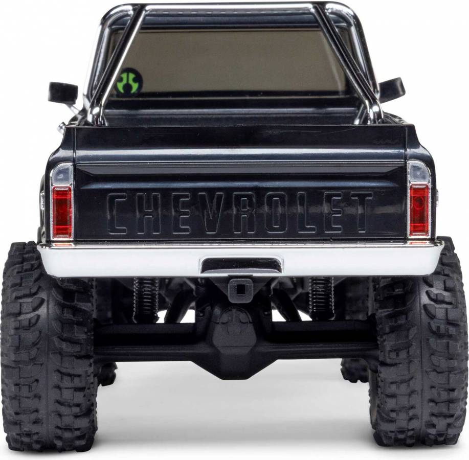 The Chevy K10 includes an angled skid plate to let you easily slide over challenging obstacles - a feature usually found only in competition crawlers. Ramped axle housings and high clearance links also help to avoid dragging and hangups. Climbing stability on the rocks gets a boost from the chassis’ forward weight bias. Other performance features include damped 25mm shocks, full ball bearings, a powerful Axial 65T motor, and dependable Spektrum electronics that are mounted low in the chassis for the optimal center of gravity.