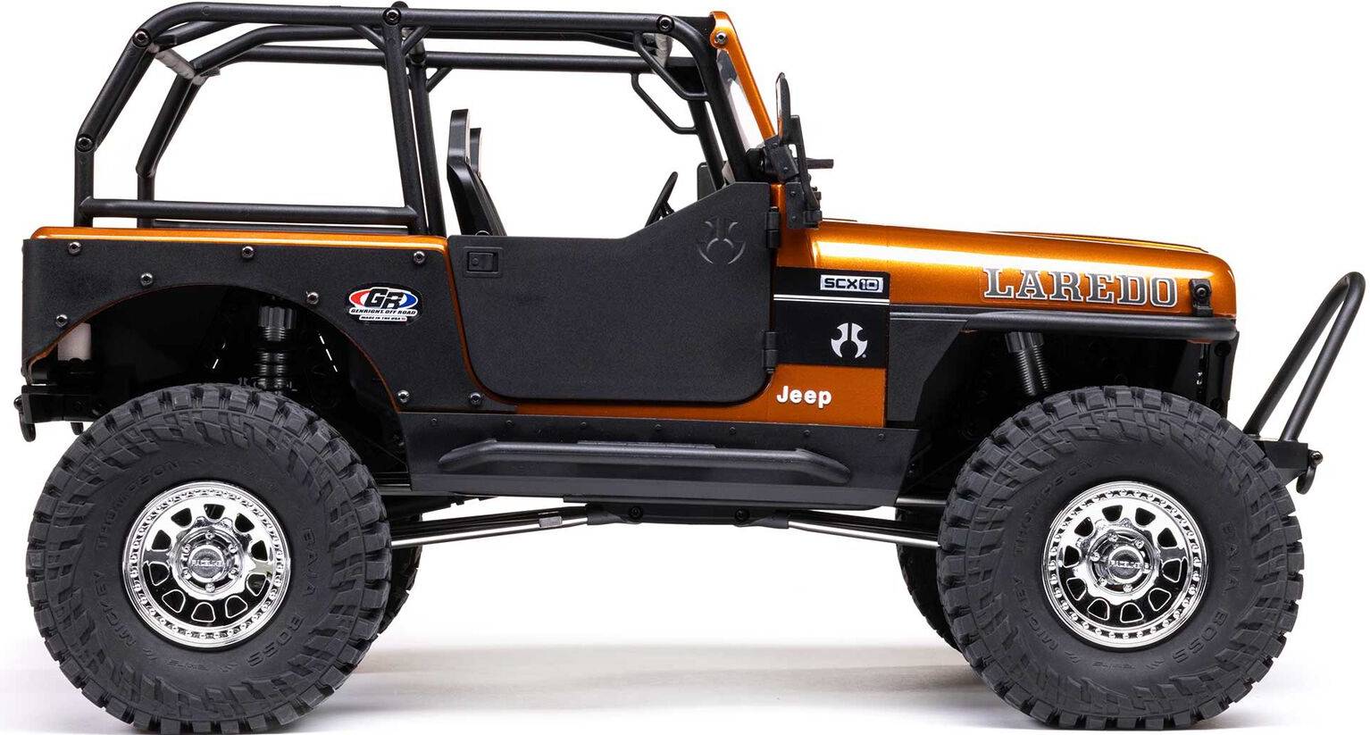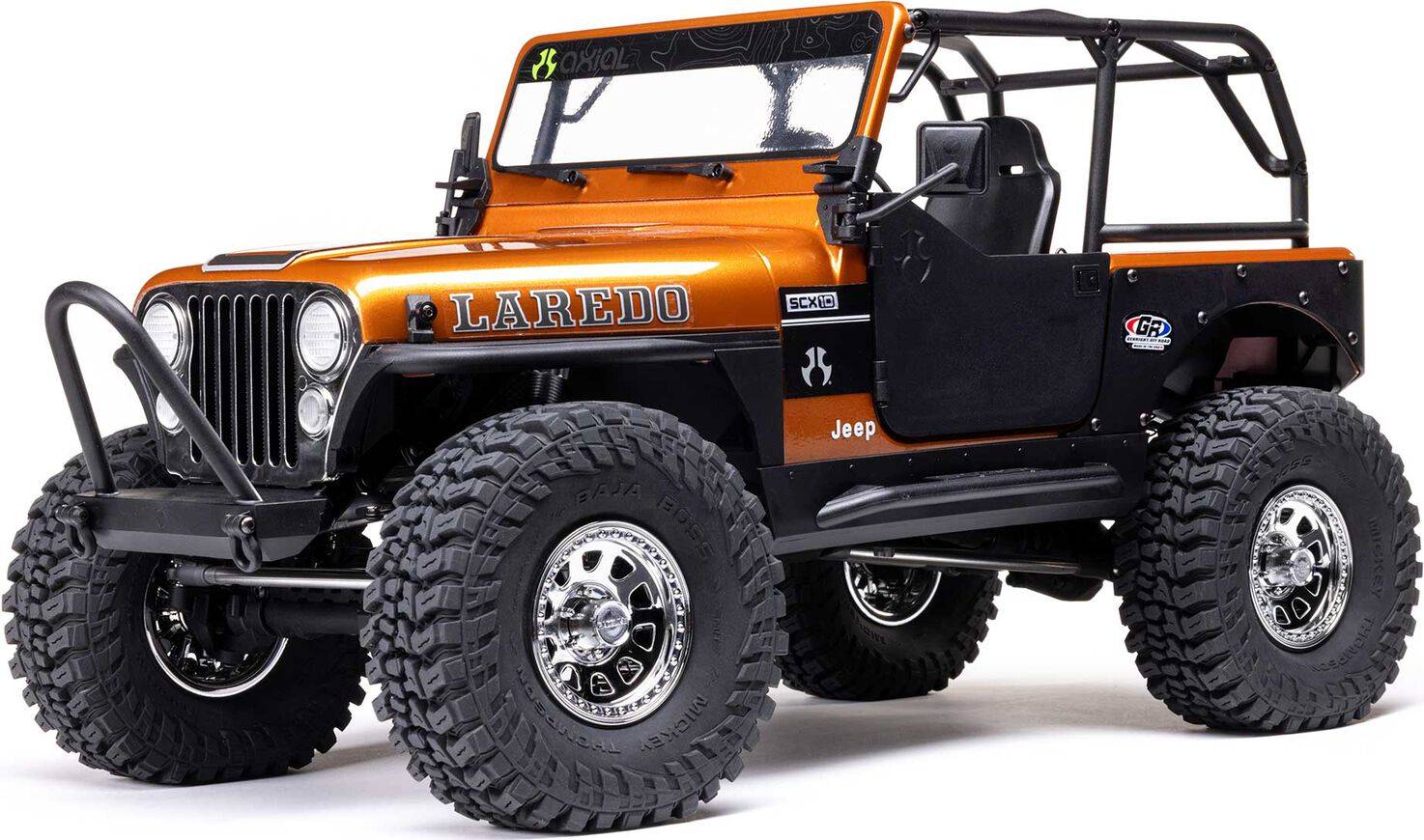 The SCX10 III Jeep CJ-7 tackles any trail with confidence, but its incredible scale detail makes Axial fans eager to turn it into their next rock-crawling masterpiece. In addition to the officially licensed Jeep CJ-7 body, this rig features officially licensed Gen-Right bumpers and body armor, a complete interior with an opening center console, a roll cage, and more. Even the wheels and tires add to its authenticity. The wheels are officially licensed Raceline Daytona beadlocks, and the high-traction tires are officially licensed Mickey Thompson Baja Boss treads.