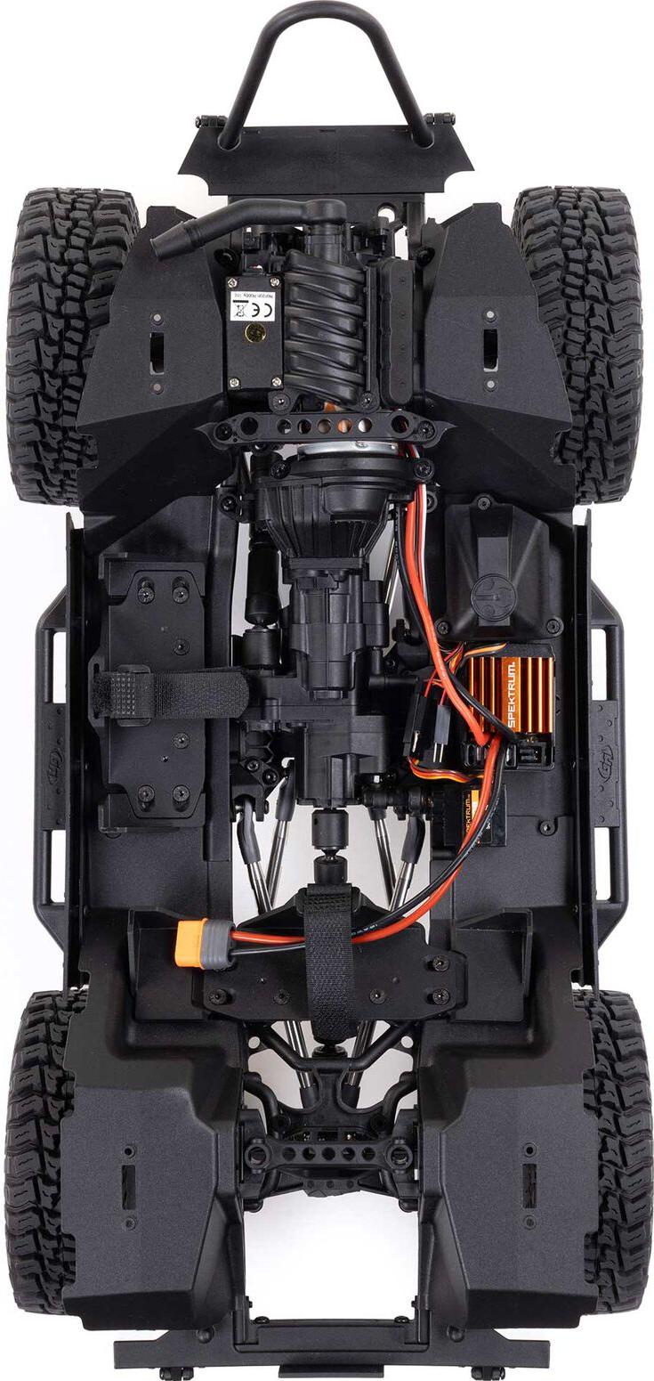 The SCX10 III Jeep CJ-7 V2 arrives fully finished and ready-to-run with a factory-installed, brushed power system and Spektrum SLT3 transmitter. The V2 features upgraded electronics, including a separate ESC and receiver for easier upgrades, a stronger steel-gear servo with industry-standard 25T spline, and a dual-protocol receiver that's compatible with advanced Spektrum controllers. Just add your choice of 2-3S LiPo battery and charger.