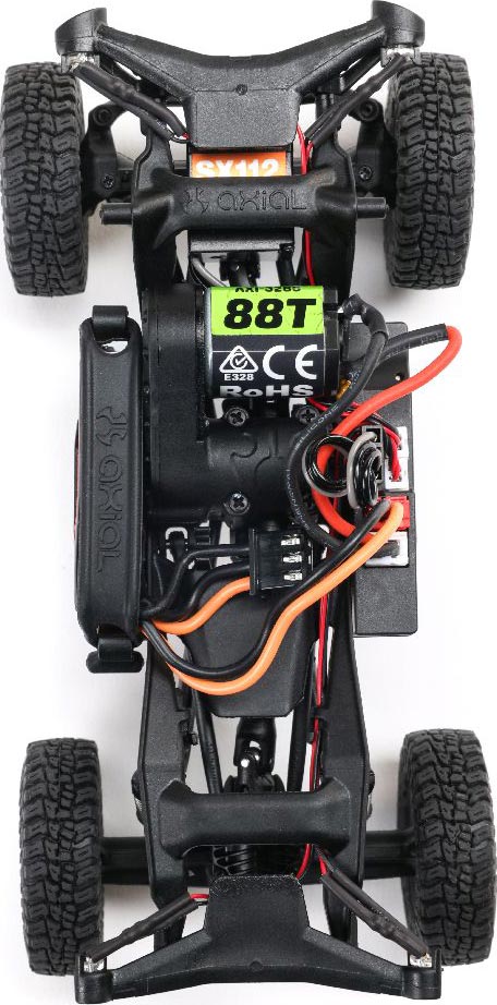 For example, the SCX30 Ford Bronco includes an angled skid plate to let you slide easily over challenging obstacles. That’s a feature usually found only in competition crawlers. Ramped axle housings and high clearance links also help to avoid dragging and hangups. Performance on the rocks gets another boost from the climbing stability of the chassis’ forward weight bias. And there’s much more, from damped shocks, full ball bearings, and a powerful Axial 88T motor to dependable Spektrum electronics that are mounted low in the chassis for the best center of gravity.