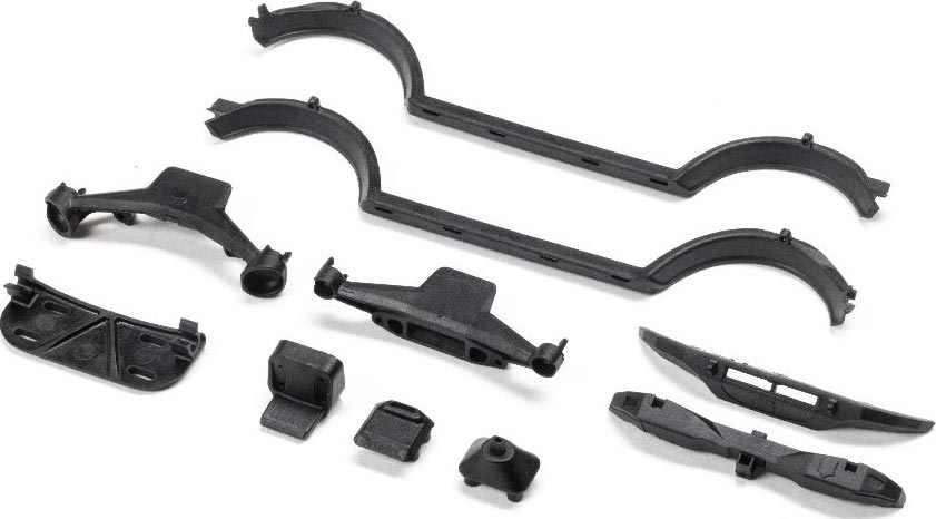 - Injection molded bumpers, fenders and body mounts for the SCX0 Bronco