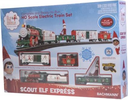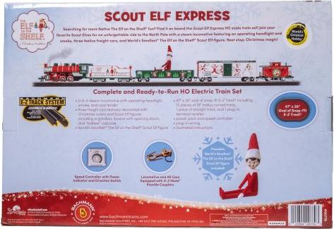 Searching for festive The Elf on the Shelf® fun? Find it on board the Scout Elf Express. Join your favorite Scout Elves for an unforgettable ride to the North Pole with a steam locomotive featuring an operating headlight and smoke, three festive freight cars, and World’s Smallest® The Elf on the Shelf® Scout Elf figure. Next stop; Christmas magic!