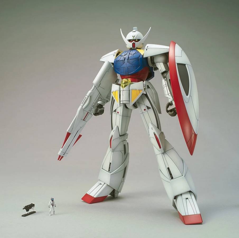 Based on its appearance in Turn A Gundam, the titular Mobile Suit joins the Master Grade 1/100 scale model kit series! This exclusive and unique model features an opening and closing chest hatch when completed—along with an in-scale Loran Cehack figure that can fit inside the Gundam and, surprisingly, a tiny cow figure.