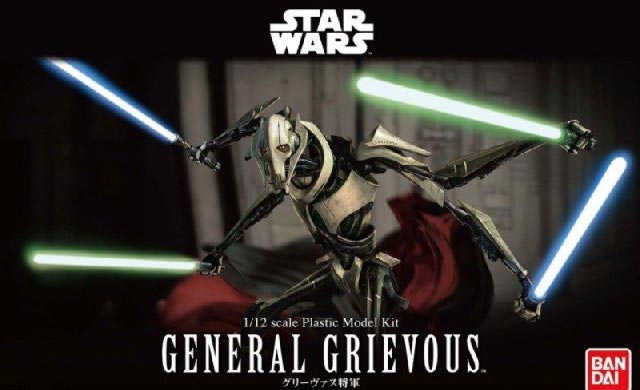 The infamous Jedi hunting Cyborg, General Grievous, is here as a 1/12 scale BAN216743 kit! everything from the organs to the extra arms has been faithfully recreated. The cloak is made of flexible materials and the arms can be either regular dual arms or the quad arms. It also comes with four Lightsabers and a dedicated stand.
