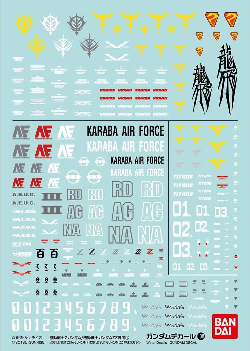 Gundam Decal GD-108 Mobile Suite Z Gundam /Mobile Suit ZZ