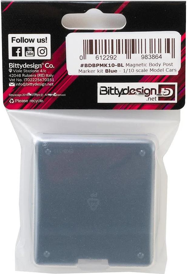 The Bittydesign Magnetic Body Post Marker Kit is a great tool to help get your body post holes lined up perfectly. Anyone who has mounted a body - especially a painted body - knows how difficult it is to get the post holes lined up perfectly. This high powered magnet kit helps you find the position of the body posts, dramatically simplifying the hole marking process. The kit is optimized to be used on all the 1/10 scale Off and On-Road cars and is a must have for enthusiasts that demand perfection.
