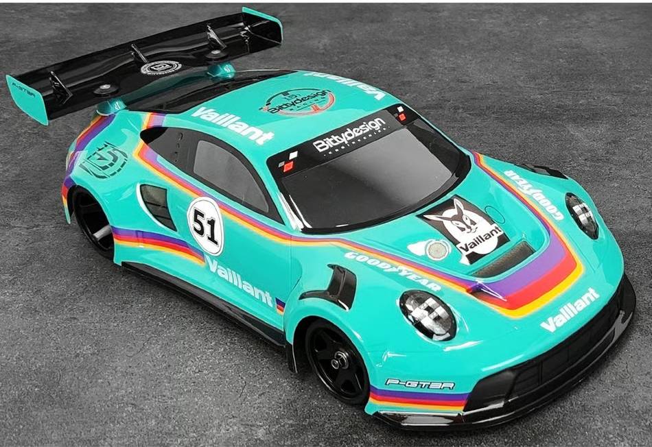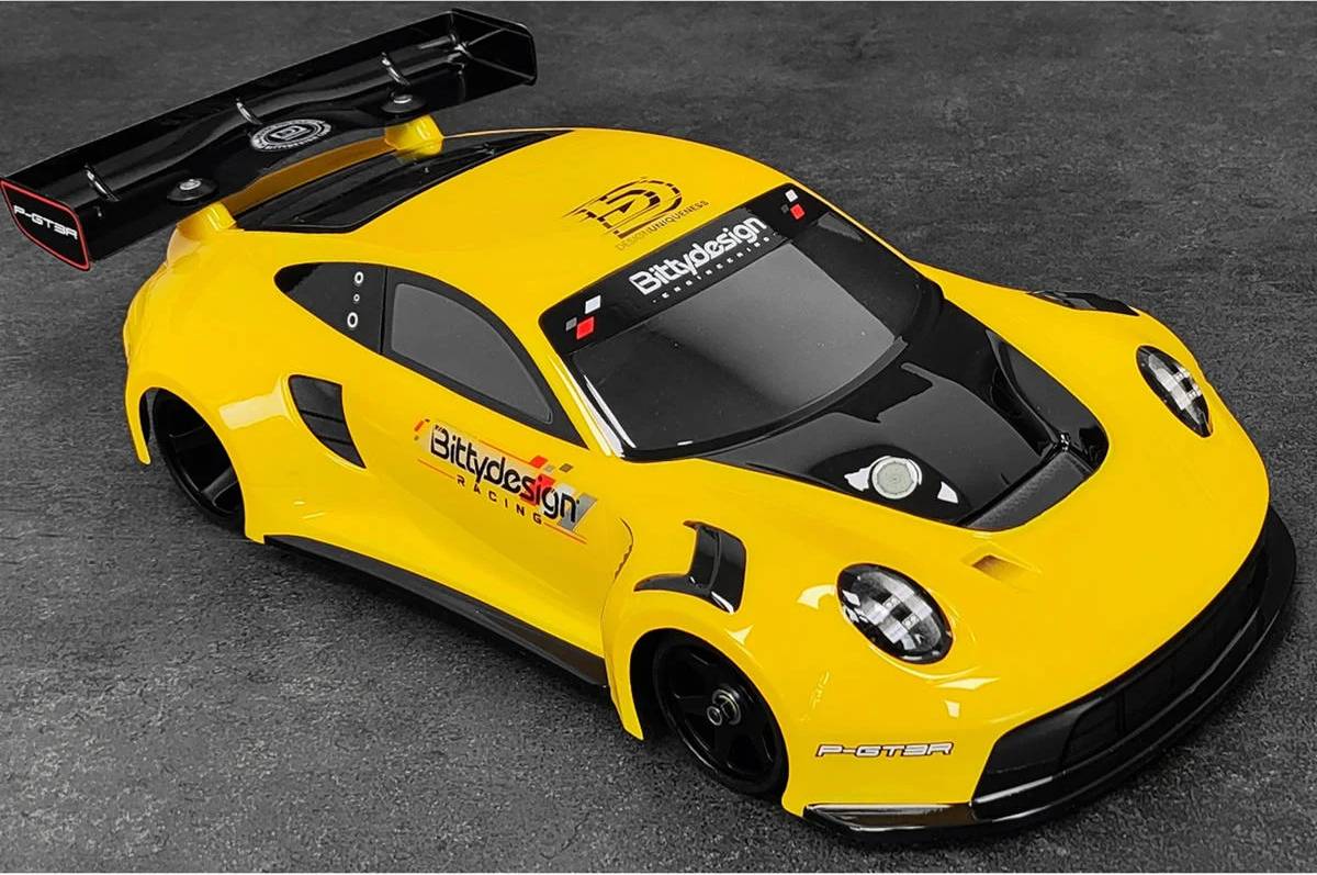 The P-GT3R 1/12 GT On-Road Body by Bittydesign is an extraordinary light weight and aerodynamic marvel compatible with 1/12 GT electric chassis using a 201mm wheelbase. Crafted from premium Lexan polycarbonate, this body is a universal fit for 171.5mm models and complies with USGT regulations for competitive racing. With countless hours spent on 3D design, focusing on optimum aerodynamics the P-GT3R is a modern marvel with style to match. Using a 5-axis CNC machine to cut the molds this body accurately represents the passion and hard work that Bittydesign has spent on this project. Give your vehicle the advantage on the track with the looks to match with the P-GT3R body from Bittydesign.