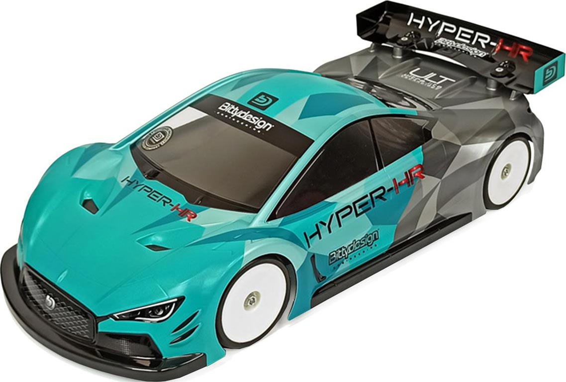 The design, inspired by a real car and adapted to the measurements necessary for homologation took several months to optimize every single detail. The HYPER-HR is a touring body with a modern look and that is guaranteed to excel in the 190mm category and provide an optimal level of performance and balance. The body shell complies with all EFRA, IFMAR, ROAR, BRCA and FEMCA homologation specs, so it can be used in any National and International race.