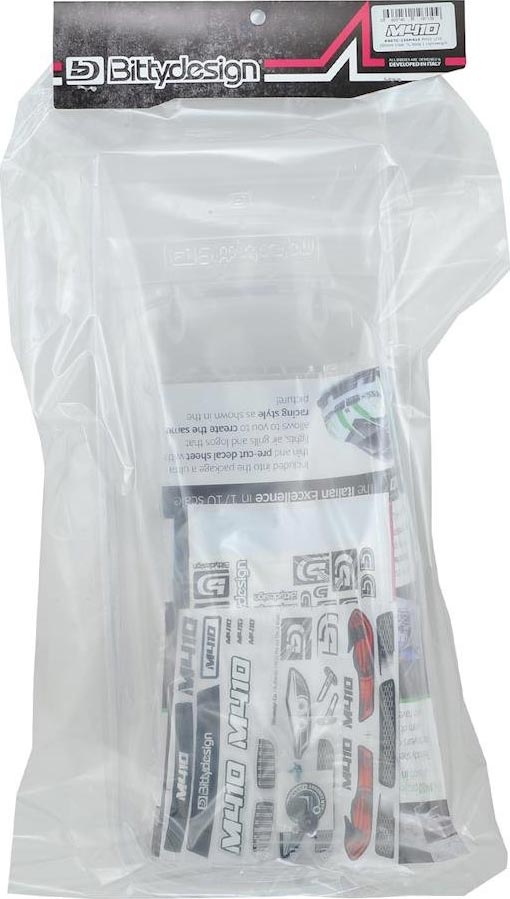 The Bitttydesign M410 1/10 Touring Car Body includes all the experience and know-how Bittydesign has gained in over 10 years of presence on the racetrack. Designed with the collaboration of an internationally renowned car designer and tested by Bittydesign's worldwide team of drivers, the M410 looks stunning and delivers performance at the top of its class.