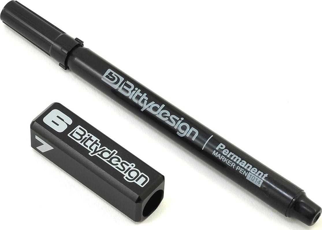 The Bittydesign Line Marker Kit is a useful accessory that will allow you to perfectly mark the lower cutting line of your On-road body shell - specifically Touring 1/10 and Pan-car 1/12. The kit is made up of an aluminum pen holder that allows you to vary the height of the tip from 6mm to 9mm off the surface.