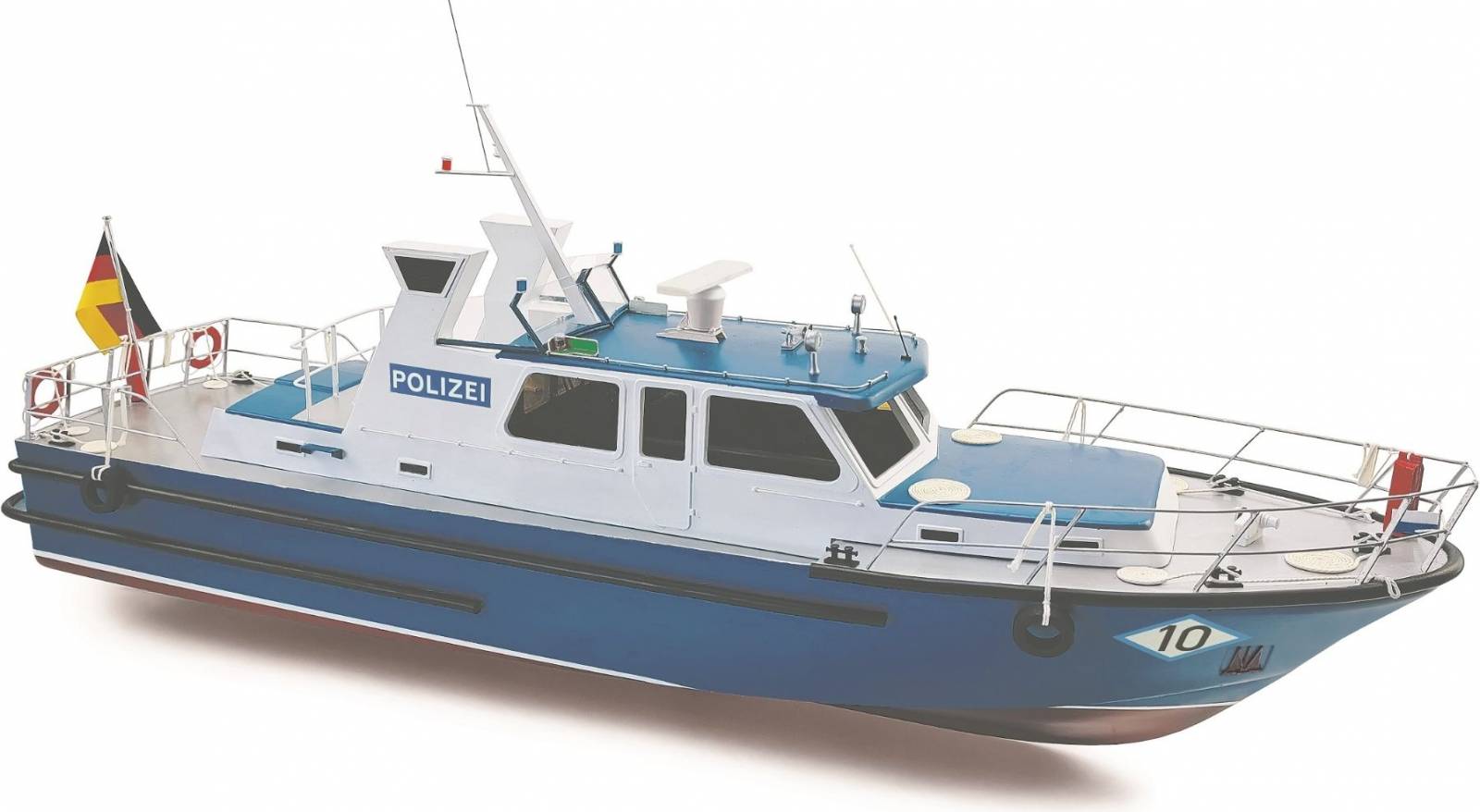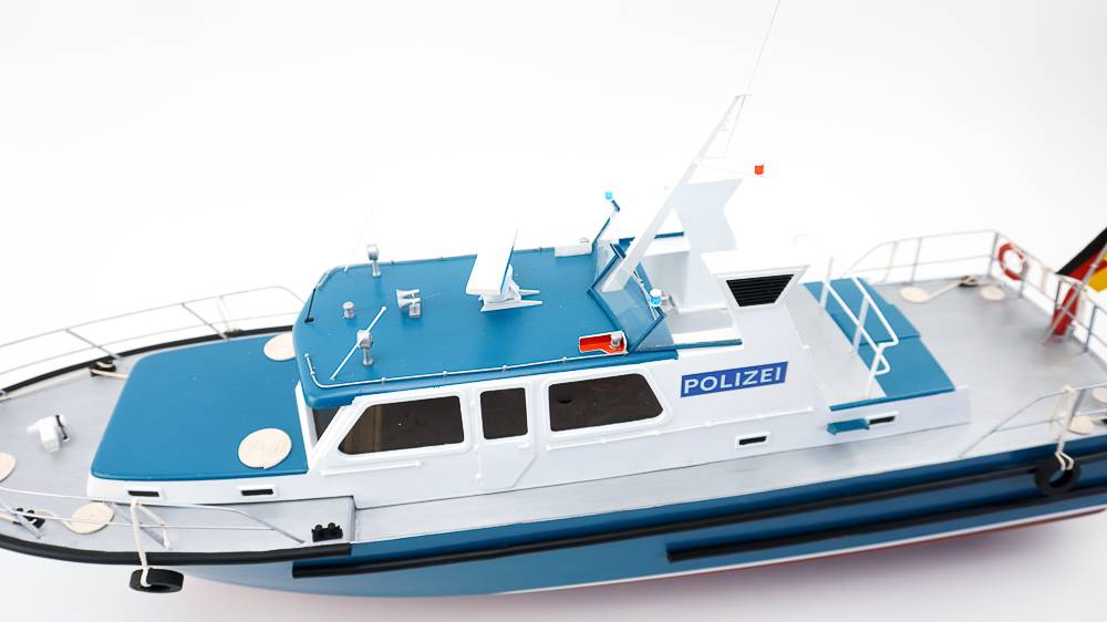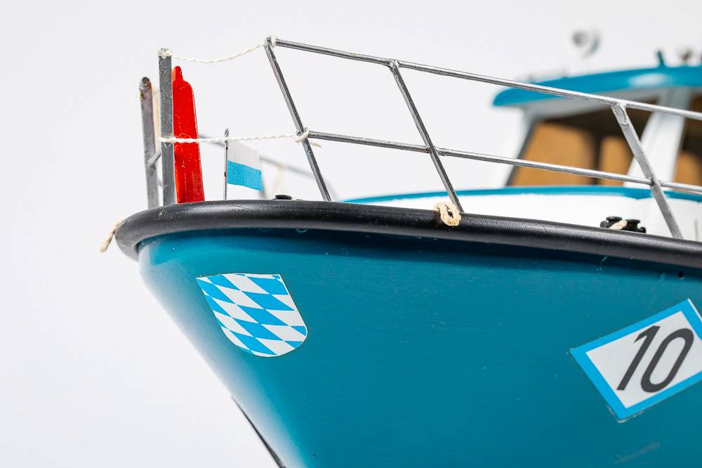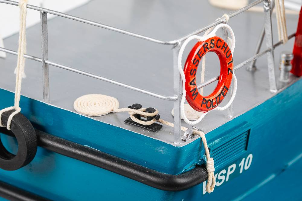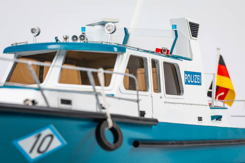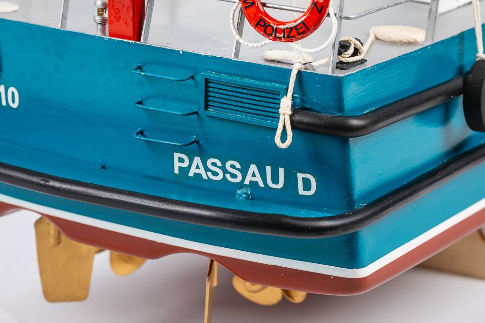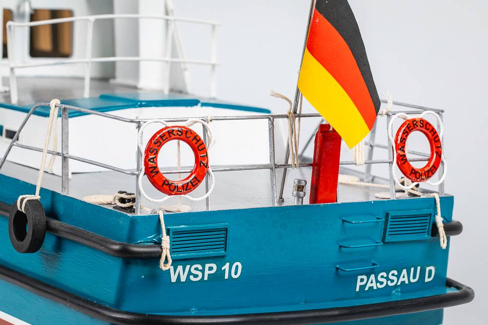 This ship, with a 15m length and a 3.9m beam, was built at the Bodan Shipyard in Kressborn, Germany, and delivered on 30th June 1989 to the Harbour Police in Bayern. The ship is stationed at Passau on the Danube. Of the regional boat type, the WSP 10 has 300 HP MAN diesel engines, which give an spproximate speed of 40 kph. When on normal duty, the boat has a crew of two and various equipment, including radar, echo sounder, automatic pilot, 4 radios and an explosion safeguard. The boat and its crew have a wide variety of tasks, such as surveillance, especially in connection with dangerous cargoes, and normal police duties. Another important task is environmental surveillance.