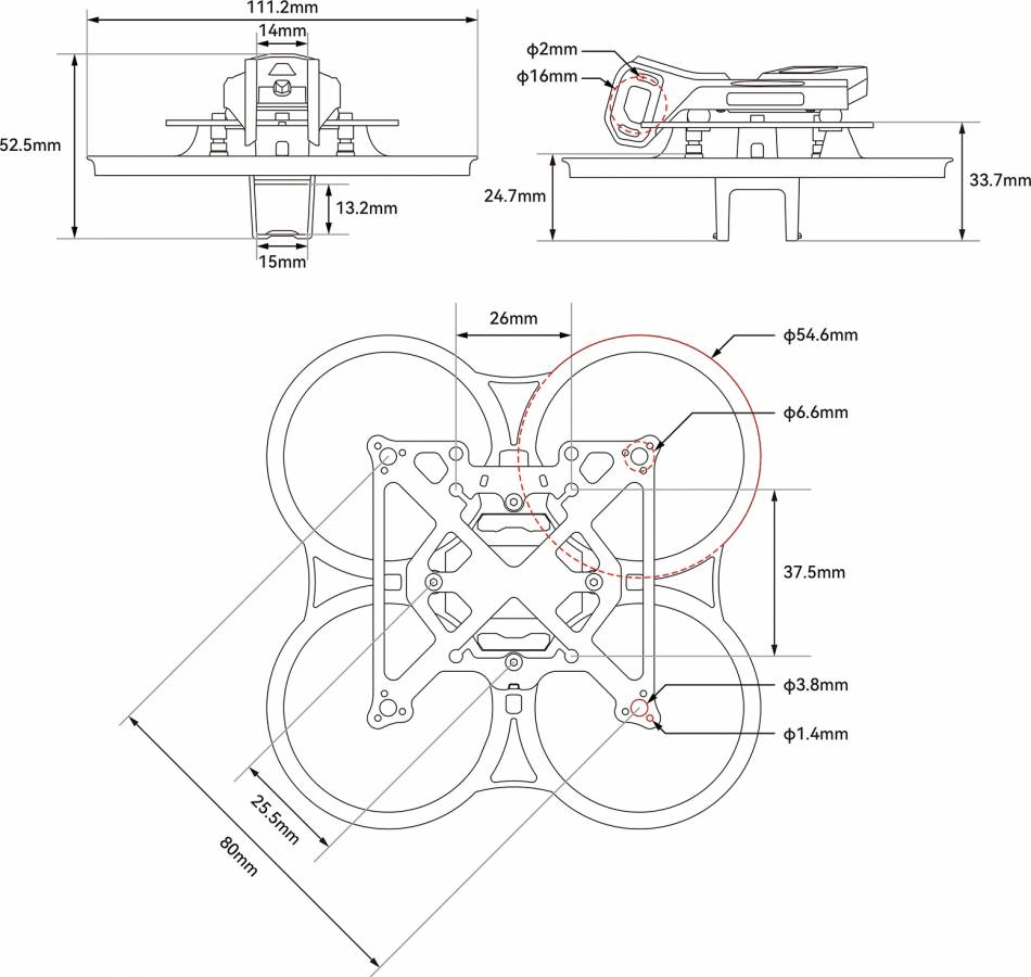 - Flight Controller Mounting Hole Size: 25.5×25.5mm, compatible with regular whoop FCs
