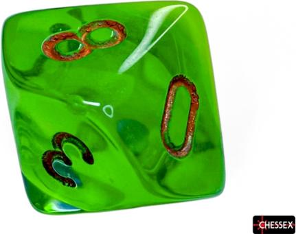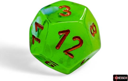 This set contains 7 Gemini Plasma Green-Teal dice with orange numbers with the following shapes: