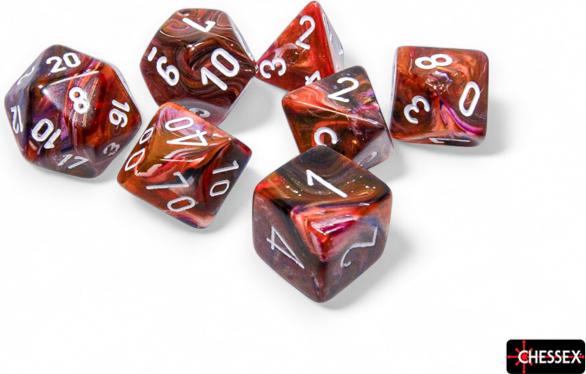 This set contains 7 Festive Symphony™ dice with white numbers with the following shapes: