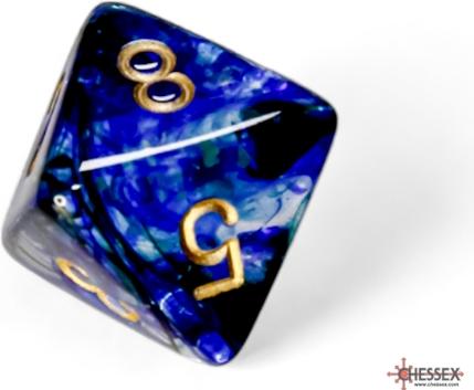 This set contains 7 Nebula Oceanic dice with gold numbers with the following shapes:
