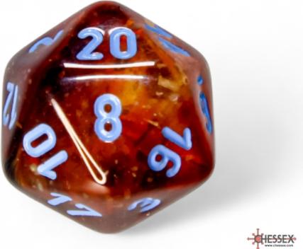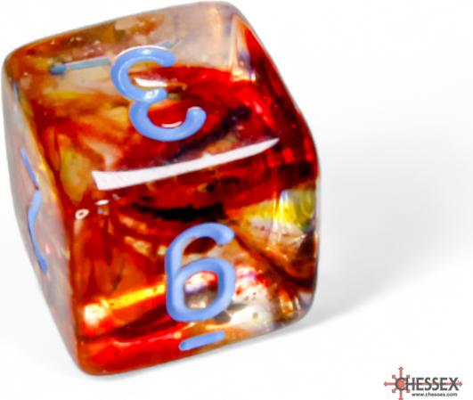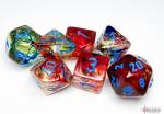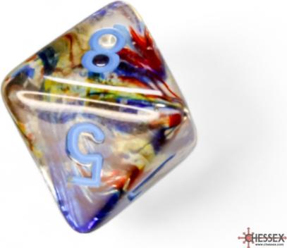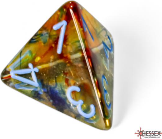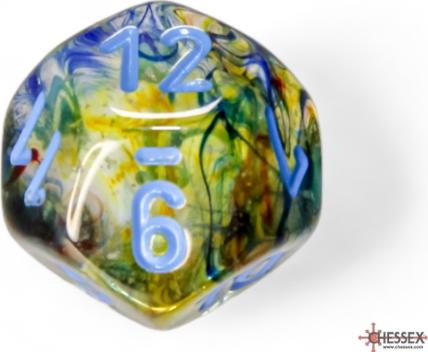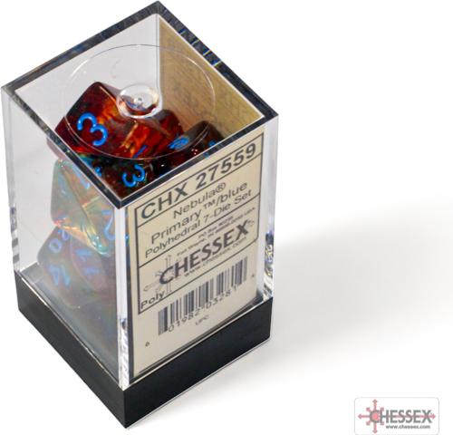This set contains 7 Nebula Primary dice with blue numbers with the following shapes: