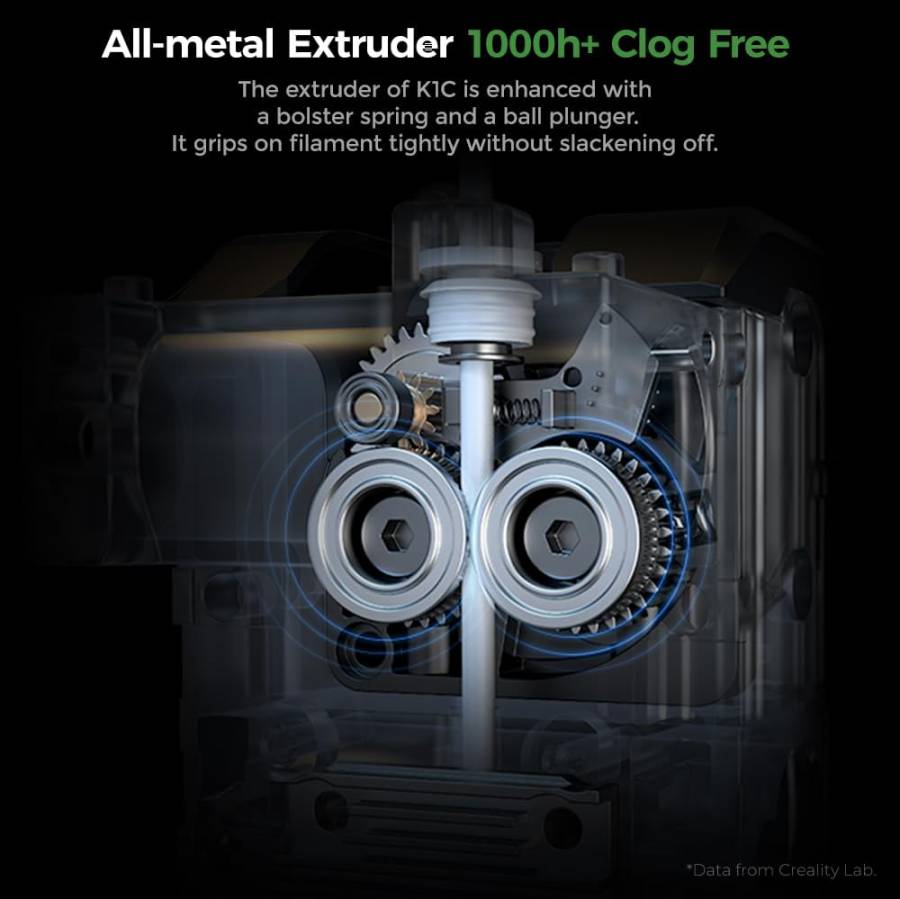 - Clog-free Direct Extruder: It can print carbon fiber filament and many kinds of filament. The K1C 3d printer equips a clog-free direct extruder enhanced a bolster spring and a ball plunger. It grips on filament tightly without slackening off. The durable steel-stipped copper nozzle is integrated with a titanium alloy heatbreak. It blocks heatcreep and can be swapped super easily. The extruder support 300? high-temperature printing