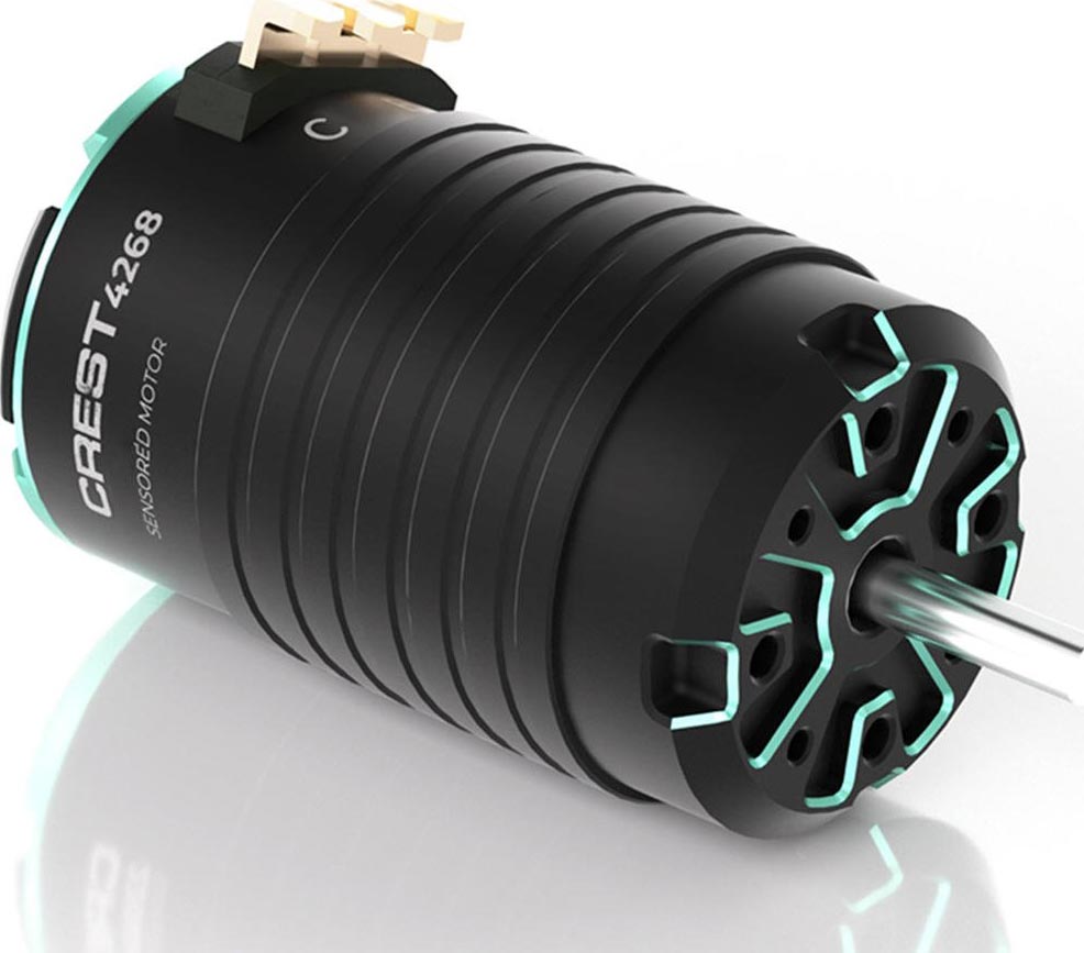 The Crest 4268 features a high-performance Hall sensor system paired with a proprietary optimization algorithm for ultra-smooth startup, accurate low-speed control, and linear throttle response. Dynamic Boost and Turbo timing adjust in real time to increase straight-line speed while maintaining stability through corner entry and exit. With adjustable timing from 20° to 40° and support for both clockwise and counterclockwise rotation, the motor can be precisely tuned to suit different tracks and driving styles. A low-cogging torque design further enhances efficiency, reduces vibration, and delivers a connected, confidence-inspiring driving experience.