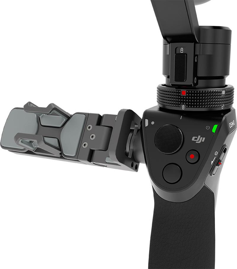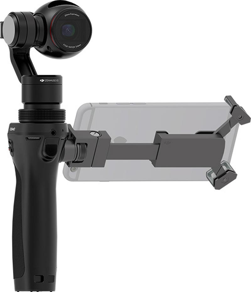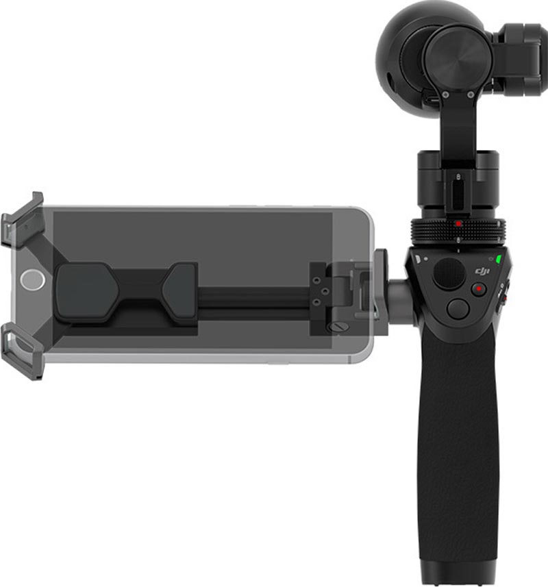 The size of the mobile device mount is 116 x 30 x 34 mm. The Osmo can comfortably hold 5.5-inch devices.