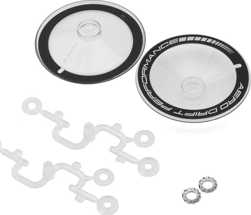 The DS Racing Sloped Aero Drift Wheel Covers are an optional accessory designed specifically for use with DS Racing Drift Element Wheels, offering a sleek and striking way to upgrade the look of your RC drift car. Perfect for those who want to stand out on the track, these covers feature a bold design with the Aero Drift Performance logo prominently wrapped around the face.