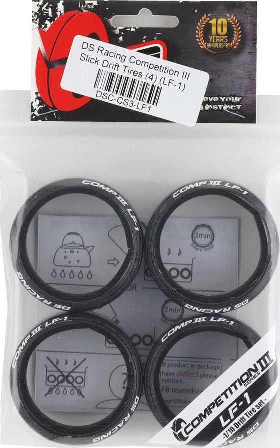 The DS Racing Competition III Slick Drift Tires are a high-performance upgrade for 1/10 scale drift vehicles, designed to deliver precision and control. Engineered for optimal roundness and balance, these tires provide a smoother, more consistent drift experience, allowing for better predictability and responsiveness. Whether you're fine-tuning your setup for competition or casual drifting, these tires offer a reliable solution to enhance your driving performance.