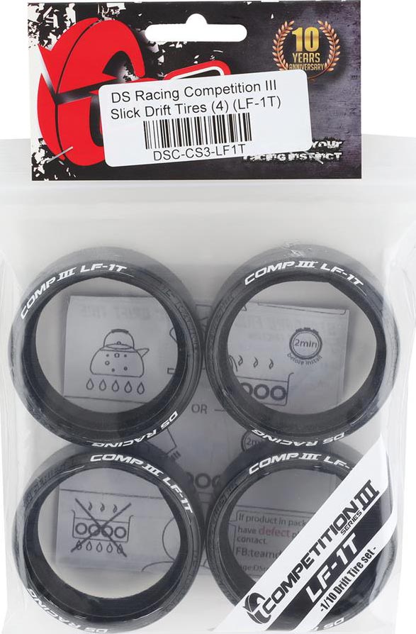 The DS Racing Competition III Slick Drift Tires are a high-performance upgrade for 1/10 scale drift vehicles, designed to deliver precision and control. Engineered for optimal roundness and balance, these tires provide a smoother, more consistent drift experience, allowing for better predictability and responsiveness. Whether you're fine-tuning your setup for competition or casual drifting, these tires offer a reliable solution to enhance your driving performance.