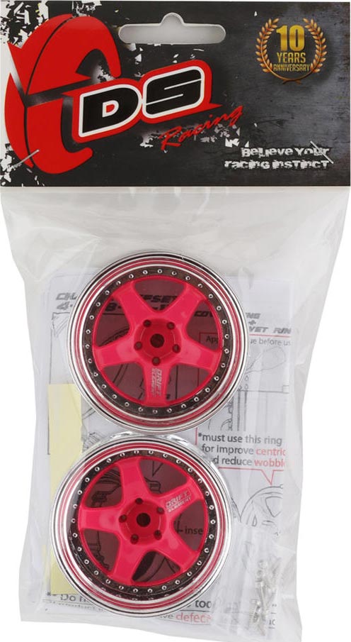 The DS Racing Drift Element 5 Spoke Drift Wheels are a great option to add that custom look to your RC drift car. These wheels feature an adjustable offset allowing you to have a factory, tucked or even stanced look. Each wheel is broken down into five pieces: Inner wheel, Outer wheel, Wheel Face, Inner rivet ring and Outer rivet ring. DS Racing has made these components available in multiple color and style options allowing you to select the wheels that will best match your build.