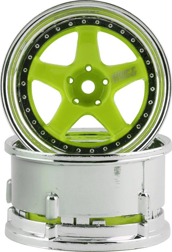 Drift Element 5 Spoke Drift Wheels (Green Face/Chrome Lip/Chrome