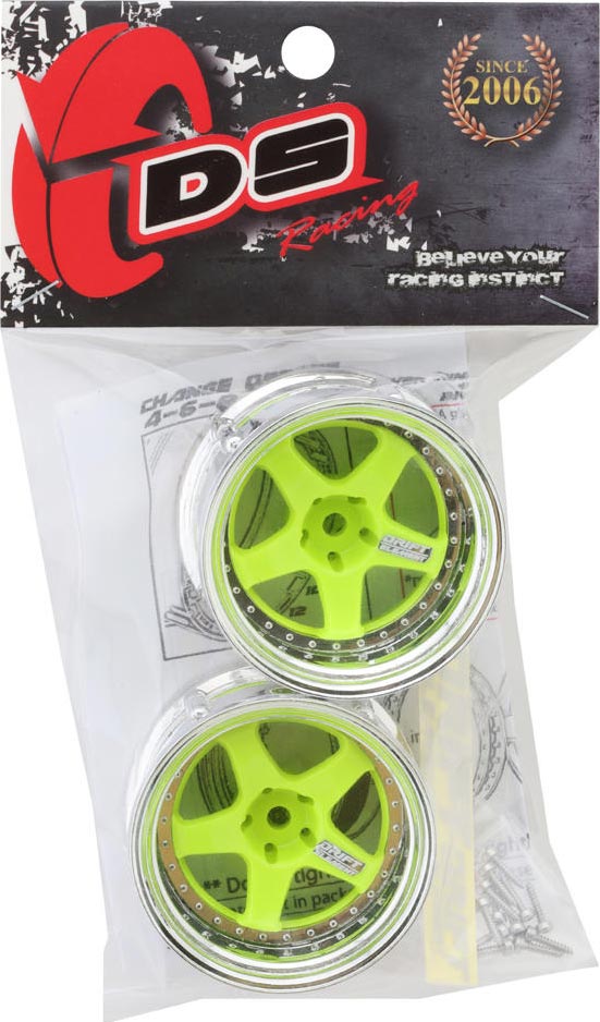 The DS Racing Drift Element 5 Spoke Drift Wheels are a great option to add that custom look to your RC drift car. These wheels feature an adjustable offset allowing you to have a factory, tucked or even stanced look. Each wheel is broken down into five pieces: Inner wheel, Outer wheel, Wheel Face, Inner rivet ring and Outer rivet ring. DS Racing has made these components available in multiple color and style options allowing you to select the wheels that will best match your build.