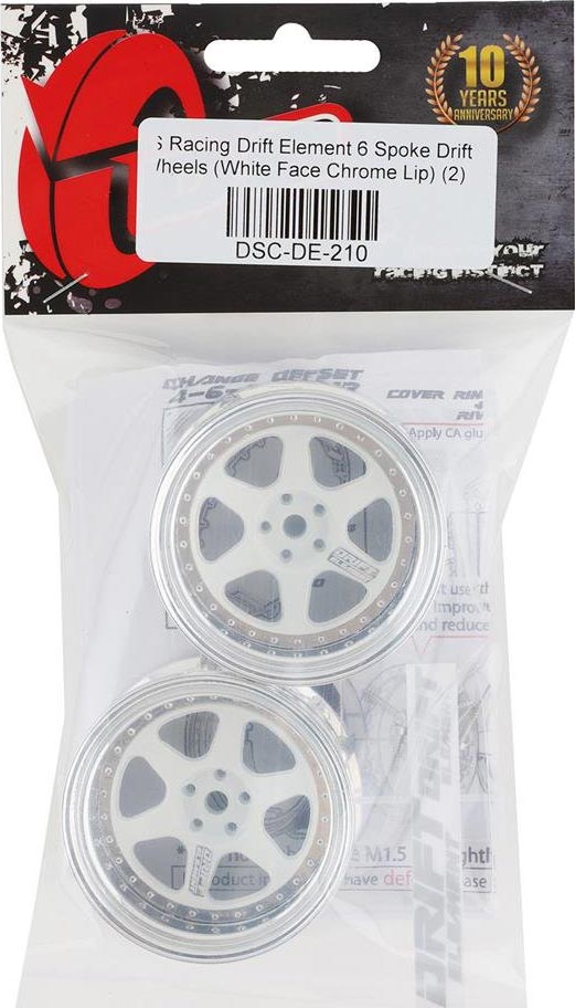 Drift Element 6 Spoke Drift Wheels (White & Chrome) (2)