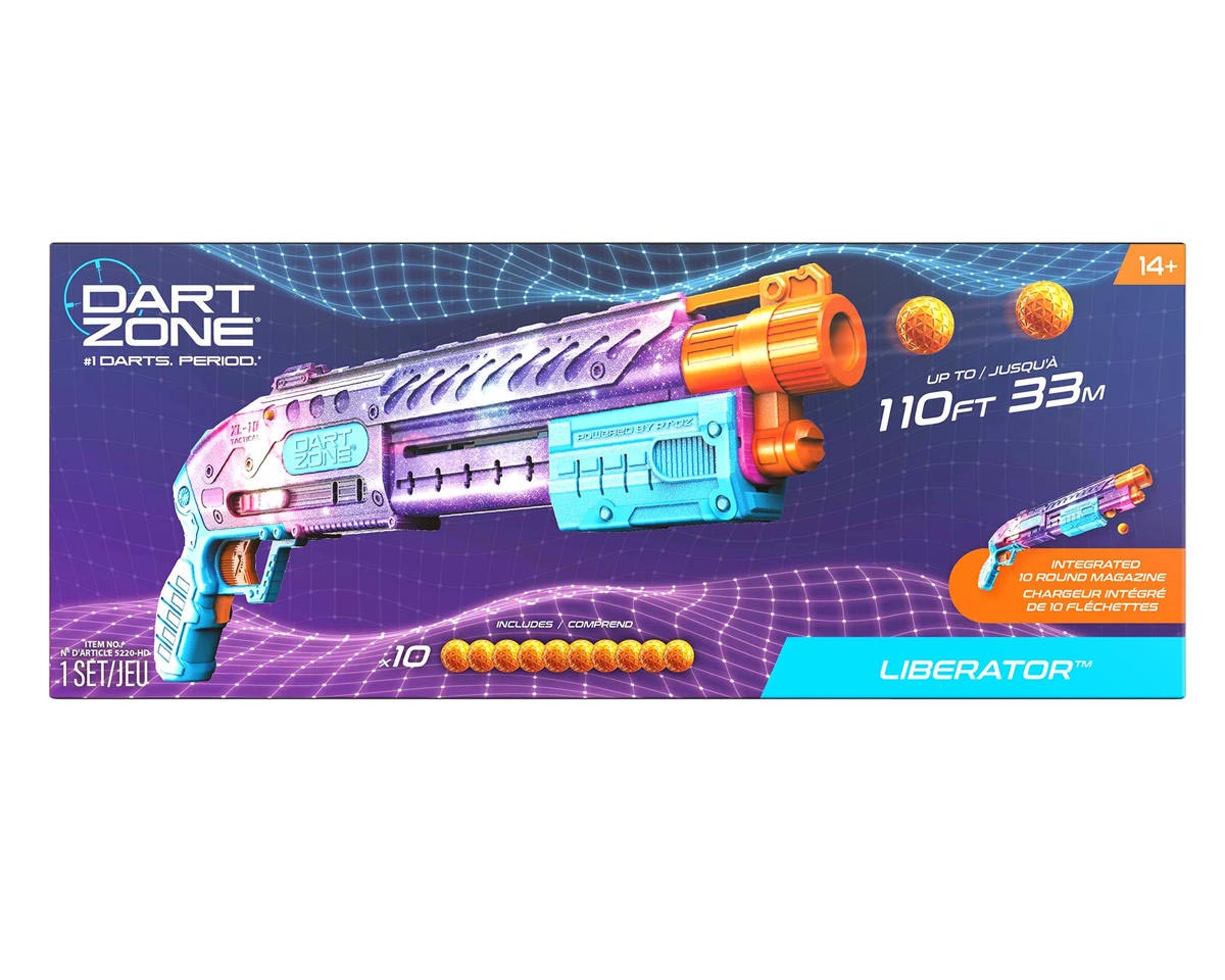With bold styling and stellar colors, the Liberator stands out whether you’re competing in the backyard or facing off in a full-scale foam battle. The Liberator is engineered for nonstop fun with an integrated 10-round magazine and pump-action blasting. Prime, fire, and repeat. This blaster is built for reliable performance and quick follow-up shots, giving you the edge when it matters most. Perfect for teens, hobbyists, and kidults alike, the Liberator includes 10 foam rounds to keep the action going right out of the box. Easy to load and built to last, this exclusive version combines the power and fun you expect from Dart Zone with a fresh new look you won’t find anywhere else. Whether you’re stocking up for casual games or building your collection, the Dart Zone Liberator brings unbeatable performance with a design that’s out of this world. Pair it with our Dart Zone Pop-Up Target for target practice or quick clean-up, making gameplay even more fun and hassle-free.