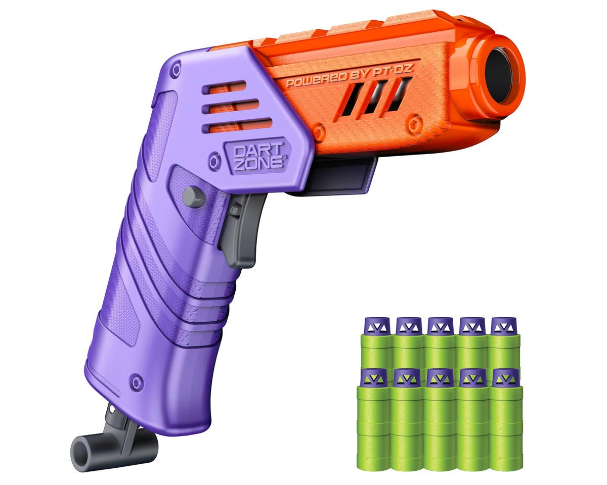 With its quick-fold action, this remarkable single-shot foam dart blaster can go from your back pocket to ready for action in seconds. It may be mini, but it packs all the speed, power and precision you’d expect from a Dart Zone Max blaster.