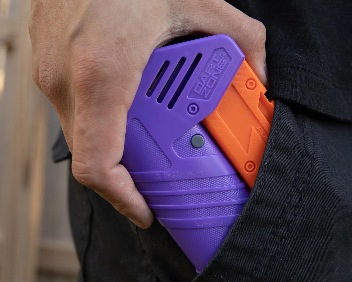 When you’re looking for a pro-level pocket-sized blaster that will take your opponents by surprise, nothing beats Solo Pro. The Dart Zone Max® Solo Pro Dart Blaster features an innovative foldable design that allows you to carry it with you wherever you go. Don’t let this mini dart blaster’s size fool you, the Dart Zone® Solo Pro blasts darts up to 120 feet at 120 feet per second, and offers the single-shot precision you need to take your dart battles to the next level.