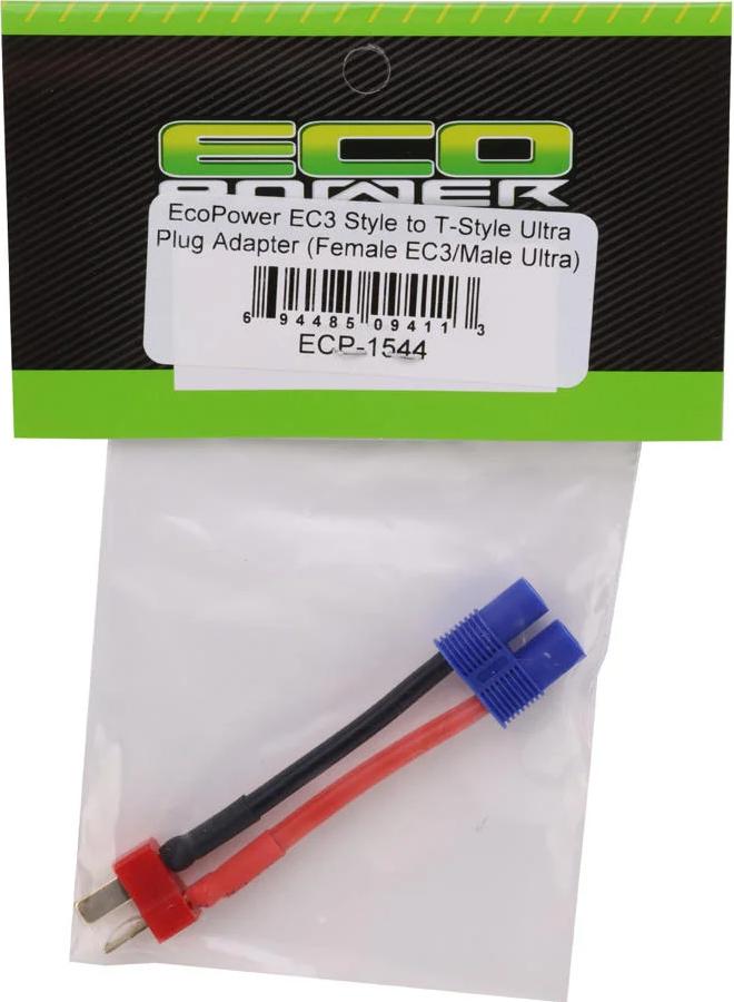 The EC3 Style to T-Style Ultra Plug Adapter from EcoPower is a simple and effective solution for connecting RC components that use different connectors. Designed for reliable power transfer, this adapter allows devices equipped with EC3-style connectors to be used with batteries featuring T-style Ultra Plugs.