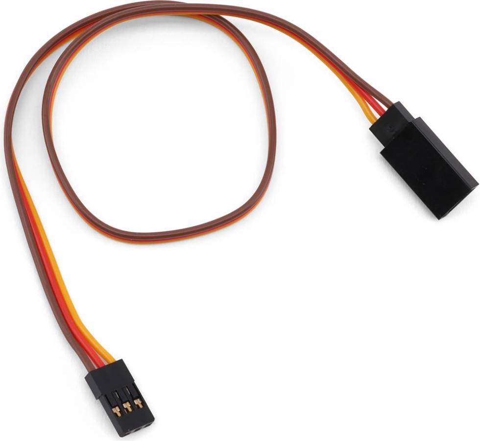 This 30cm (12-inch) servo extension lead features high-quality 22AWG wire for improved strength and electrical performance. The male end uses a JR-style connector, while the female end is designed to accept Futaba, JR, Airtronics, and HiTec connectors for broad compatibility. This heavy-duty construction makes it well suited for high-torque servos and demanding RC setups, with careful attention needed to confirm polarity when using JR-style connectors.